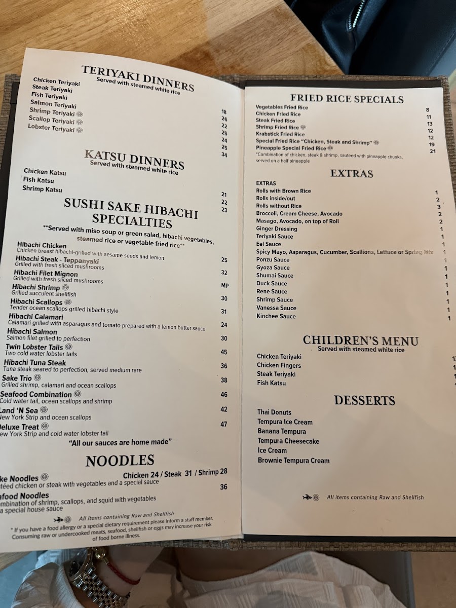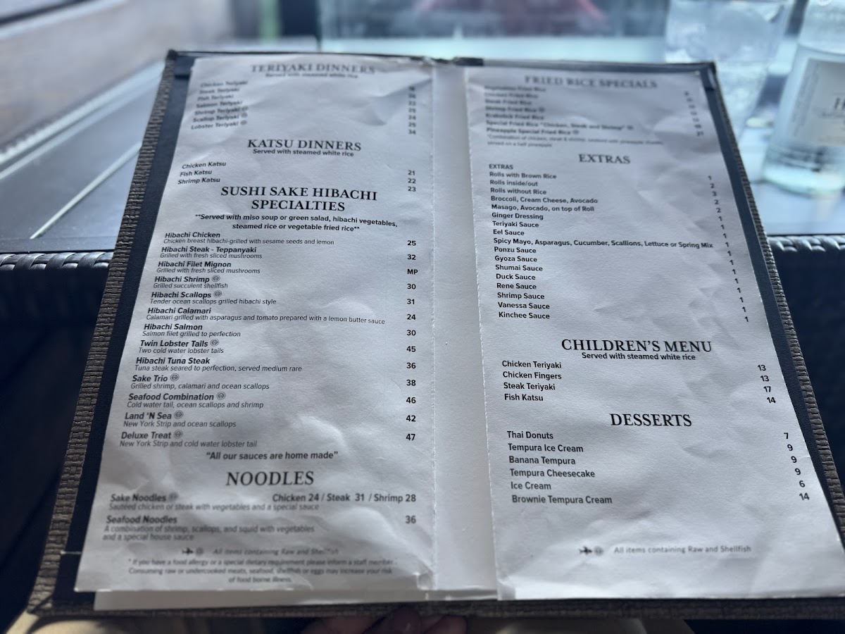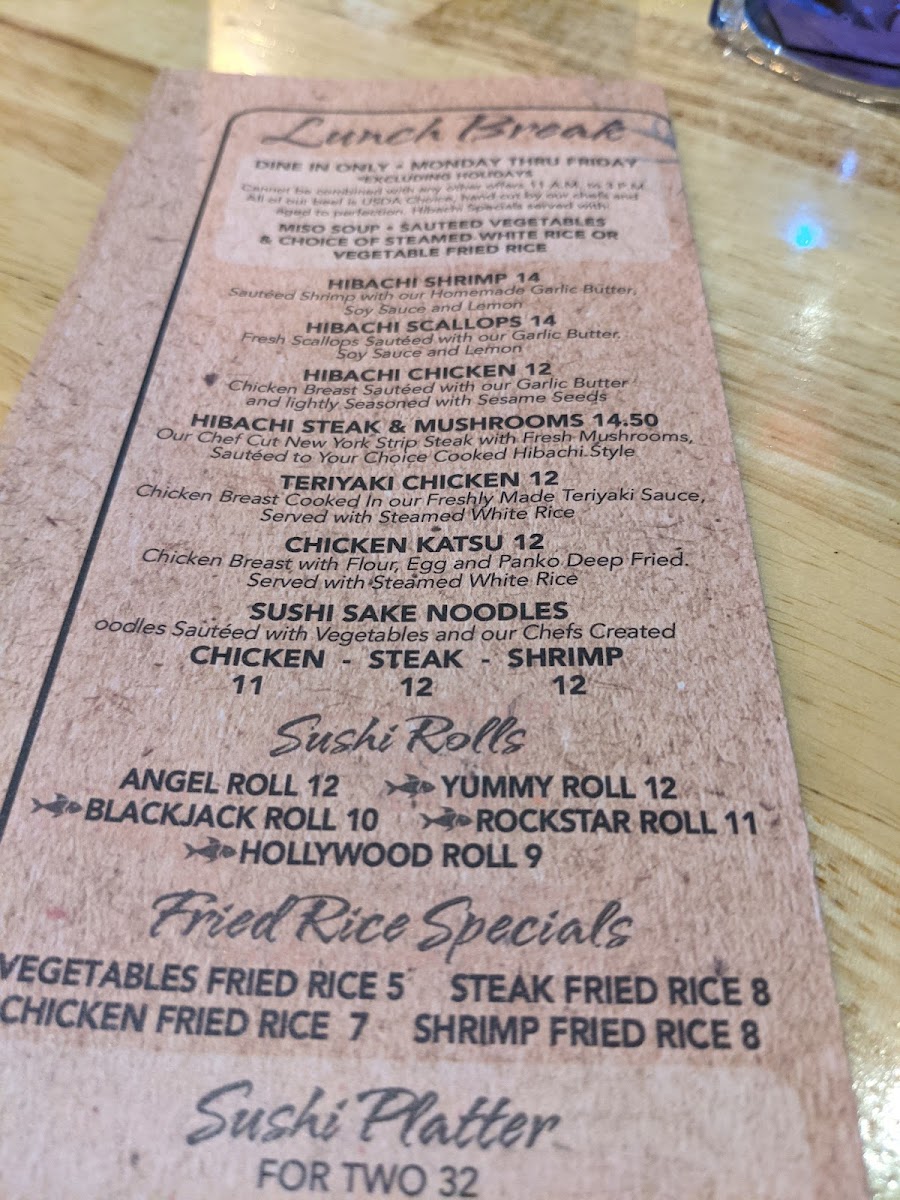 For those craving hearty options, the hibachi dinners stand out—tender chicken, steak, or shrimp grilled with aromatic spices, paired with miso soup, fresh vegetables, and your choice of rice. Vegetable lovers will appreciate the crisp Sweet Potato Tempura and delicate Age Tofu, showcasing the kitchen’s attention to fresh, quality ingredients.